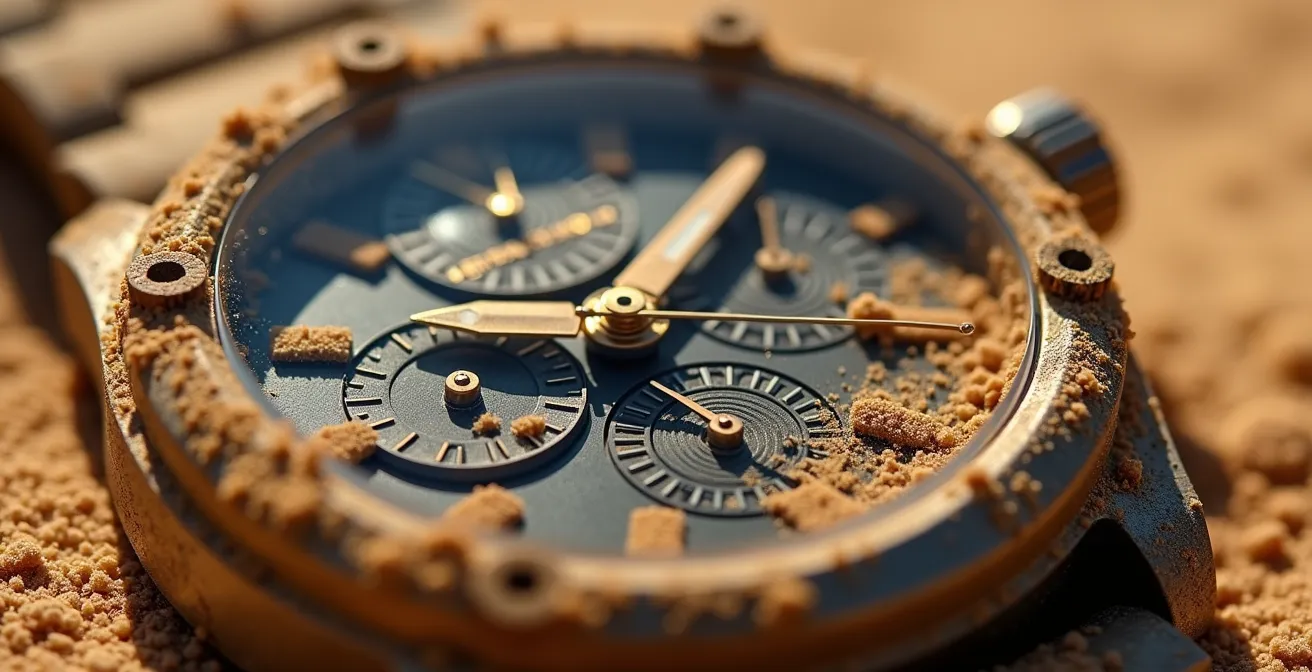 Les environnements hostiles combinent des contraintes que les tests ne peuvent anticiper. Une montre exposée simultanément à la poussière désertique, aux vibrations d’un véhicule blindé et à des températures dépassant 50°C subit une dégradation accélérée. Les grains de sable pénètrent dans les interstices microscopiques, agissant comme abrasif sur les pièces mobiles. La chaleur extrême dilate les matériaux tandis que les vibrations créent des micro-chocs répétitifs.